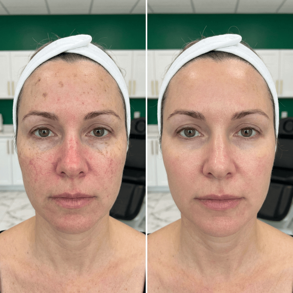 Together, this allows us to treat pigmentation and sun damage, redness and rosacea, thread veins, acne breakouts and post-acne marks, uneven skin tone and dullness, and early skin laxity — all within one treatment system. We’re not just improving how your skin looks. We’re improving how it functions and holds itself over time.